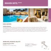 Ein paar Schritte vom Meer, 500 m von der Altstadt von Mazara del Vallo und von der Anlegestelle der Schi e zu den herrli- chen Ägadischen Inseln, nach Pantelleria und Tunesien entfernt, heisst Sie das Hotel Mahara herzlich willkommen. Tauchen Sie ein ins behagliche Ambiente der Weinstube oder geniessen Sie im Restaurant Ghibli die ausgezeichnete traditionelle Küche mit fangfrischem Fisch und unverkennbaren Ein üssen des nahen Afrikas. Die 77 Zimmer sind elegant eingerichtet und mit modernstem Komfort ausgestattet. Entspannung nden Sie am Pool, im Wellnessbereich oder am Strand (kostenloser Shuttle).