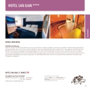Nach St. Moritz kommt man nicht nur, um sich zu erholen, sondern vielmehr, um etwas zu erleben! 1.856 m über dem Meeres- spiegel gelegen, müssen Sie hier nichts entbehren, denn ein Highlight folgt dem anderen! Das einzigartige Hochtal bietet im Winter wie Sommer unzählige Freizeitmöglichkeiten. Im Hotel San Gian nden Sie den Genuss, Ihre Zeit sinnvoll zu erleben. Schöne und behagliche Zimmer, mit allem Komfort ausgestattet, ein gemütliches Restaurant mit einer Hausbar und einen neu gestalteten Aufenthaltsraum zum Entspannen. In allen Räumlichkeiten sind Sie von Kunstwerken einheimischer Maler und Fotografen umgeben.