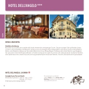 Besuchen Sie Locarno, eine wundervolle Stadt, inmitten des einzigartigen Tessins. Die grossartigen Täler auf beiden Seiten Locarnos sind ein beliebtes Aus ugsziel. Geniessen Sie ein unvergessliches Naturerlebnis und nutzen Sie die vielen Möglich- keiten, vom Wandern entlang von reissenden Bächen bis hin zu Reitaus ügen, Trekkings oder einem Bad im Lago Maggiore. Das renovierte Hotel Dell‘Angelo be ndet sich direkt im Herzen der Stadt. Das historische Gebäude bietet modernen Komfort, eine Dachterrasse mit schöner Aussicht, eine ausgewählte Küche mit besten Weinen, Tessiner und italienischen Spezialitäten.