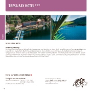 Das Hotel Tresa Bay liegt am Westufer des Luganersees und besticht vor allem durch seine Zimmer mit Panoramablick auf den See und seine zauberhafte Bucht. Freuen Sie sich auf die kleine Wellnessoase mit Sauna, Dampfbad, beheiztem Entspan- nungspool und Terrasse sowie auf das Restaurant. Hier werden vom freundlichen Personal kulinarische Köstlichkeiten aus der Schweiz und dem nahe liegenden Italien serviert. Der Golfplatz Lugano sowie zahlreiche Aus ugsmöglichkeiten bis hin nach Mailand machen das Hotel zu einem idealen Domizil für Ihre Ferien.