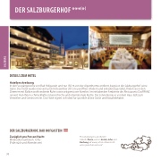 In der Fussgängerzone von Bad Hofgastein und nur 150 m von der Alpentherme entfernt, begrüsst der Salzburgerhof seine Gäste. Das Hotel wurde renoviert und im Dezember 2013 neu erö net. Modern und einladend gestaltet, nden Sie in den Zimmern mit Balkon wohlverdiente Ruhe sowie zeitgemässen Komfort. Im einladenden Ambiente des Restaurants DasFRANZ serviert man Ihnen schmackhafte österreichische und internationale Küche. Die Sonnenterrasse vor dem Haus lädt zum Verweilen und Geniessen ein. Das Hotel eignet sich ideal für sportlich aktive Gäste und Naturliebhaber.