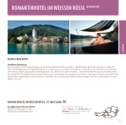 Die erste Adresse im Salzkammergut ist das Romantikhotel Im Weissen Rössl. Weltberühmt durch die Operette Im Weissen Rössl am Wolfgangsee von Ralph Benatzky. Es erwartet Sie österreichische Tradition verbunden mit modernem Lifestyle und einer einzigartigen Lage direkt am Wolfgangsee. Das SPA im See stellt mit dem 1. schwimmenden Rösslpool und dem geheiz- ten Seebad ein Highlight der besonderen Klasse dar. Im Romantik-Restaurant Kaiserterrasse wird die österreichische Küche mit neuen Ideen angereichert und zeitgemäss verfeinert. Im Seerestaurant haben bodenständige Gerichte und Produkte aus der Region Vorrang.