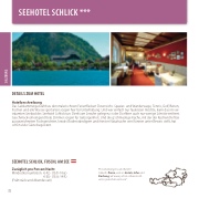 Das Salzkammergut zählt zu den malerischsten Ferien ecken Österreichs. Spazier- und Wanderwege, Tennis, Golf, Reiten, Fischen und alle Wassersportarten sorgen hier für Unterhaltung. Und wer einfach nur faulenzen möchte, kann das im ver- träumten Seebad des Seehotel Schlick tun. Direkt am Seeufer gelegen, ist der Dorfkern auch nur wenige Schritte entfernt. Geschmackvoll eingerichtete Zimmer sorgen für Geborgenheit. Und die g'schmackige Küche, mit der der Küchenchef bei ausgezeichneten Fischgerichten, kreativ Bodenständigem und feinster Naturküche sein Können unter Beweis stellt, hat schon viele Gäste begeistert.