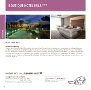 In einer der schönsten Ecken Österreichs, der malerischen Oststeiermark und direkt am Stubenbergsee gelegen, begrüsst das Boutique Hotel Erla seine Gäste. Liebevoll, modern und naturverbunden gestaltet, laden die Zimmer zum Wohlfühlen ein. Auf der mediterranen Natursteinterrasse mit Seeblick werden Sie mit regionalen Schmankerln aufs Allerbeste verwöhnt. Im harmonisch gestalteten Vitalbereich mit 2 Saunen, Aromadampfbad und Infrarotkabine können Sie Vitalität, Schönheit und Kraft tanken. Professionell durchgeführte Beauty- & Bodyanwendungen, Massagen, Ayurveda und mehr ergänzen das Wohlfühlangebot.