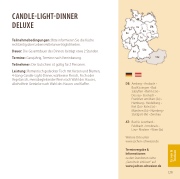 Leistung: Romantisch gedeckter Tisch mit Kerzen und Blumen, 4-Gang-Candle-Light-Dinner, wahlweise Fleisch, Fisch oder Vegetarisch, menübegleitender Wein nach Wahl des Hauses, alkoholfreie Getränke nach Wahl des Hauses und Ka ee.