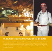 Langsam setzt sich die Bahn in Bewegung. Zu Ihrem Dinner unter Tage geht’s abwärts in die tief im Berg liegenden Stollen. Dort bekommen Sie von ehemaligen Bergleuten eine Führung durch das Bergwerk und anschließend ein stilechtes Bergmanns-Dinner. In dem romantisch beleuchte- ten Stollen, tief im Berginneren, erwartet Sie ein kulinarisches Erlebnis mit Bergmanns-Musik und Gruben-Atmosphäre.