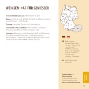 Leistung: Verkostung von hochwertigen Weiß- und Rotweinen, Grundlagen der Weinverkostung und Weinbeurteilung. Wissenswertes zu Rebsorten und Anbaugebieten; kleine Snacks und Wasser sind während dem Seminar inklusive.