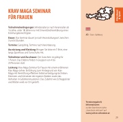 Maga mit Vermittlung effektiver Selbstverteidigungstechniken. Erkennen und Umsetzen der eigenen Stärken sowie das Verhalten in Gefahrensituationen. Das Zubehör wie Schlagpolster und Matten wird vor Ort gestellt.